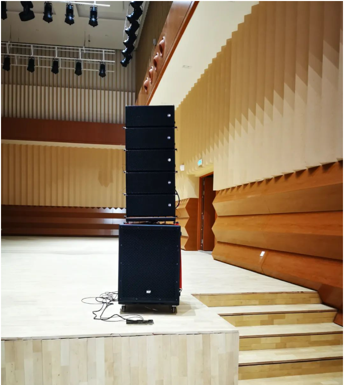 琴島音樂廳音響系統采自意大利進口品牌RCF音響HDL有源線陣列系統,舞臺返聽為兩組ART300有源系列音箱。