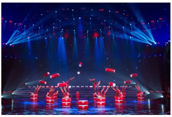 雜技《鼓與呼》通過傳統(tǒng)雜技蹬鼓表演,配合昂揚有力的鼓樂節(jié)奏,呈現(xiàn)力與美的視覺盛宴,展示昂揚向上的奮斗精神和時代風(fēng)貌。